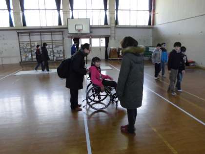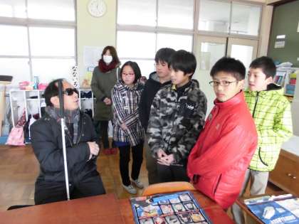 なないろ学級も交流学級の児童と一緒に手引体験に参加しました。