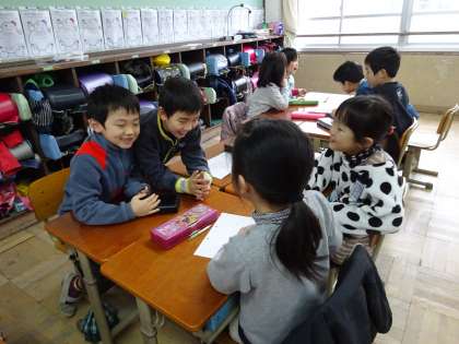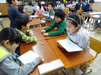 国語科「話し合って決めよう」では,話し合いで大切なことについて学習しています。今回は,大切なことに注意しながら,各グループで「お楽しみ会の各グループの出し物」について話し合いました。