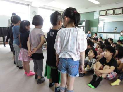 そこで一年生からもお礼の言葉と歌を歌います。元気のいい一年生を見てもらいましょう!