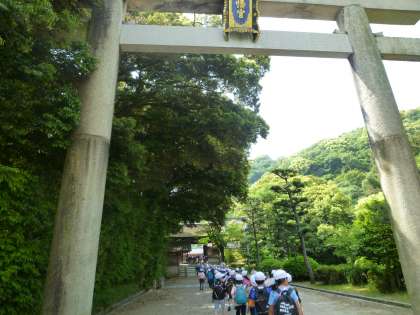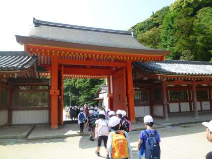 「鳥居がある!」「わあ!きれいな色!」「山の中に神社があるの?」