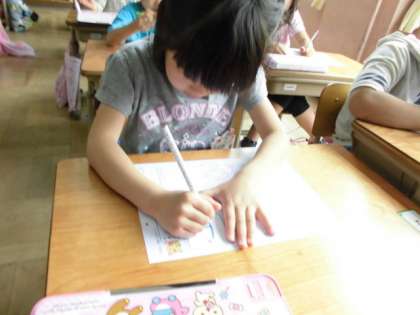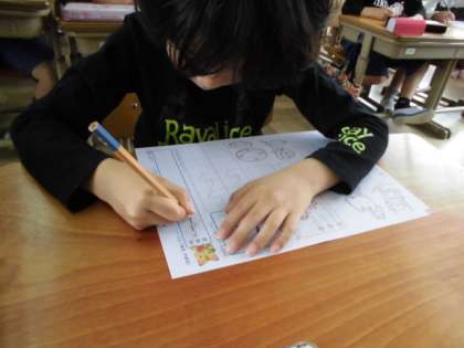 姿勢よく,正しいえんぴつの持ち方で,ひらながの学習をしています。