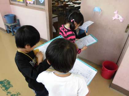 ペアで回って問題を解きながら,どんな教室で,何があるか確認しながら学校探検をしました。