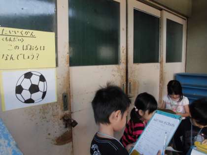 今回は,1年生だけで学校探検をしました。いろいろな部屋に,部屋に関する質問があります。