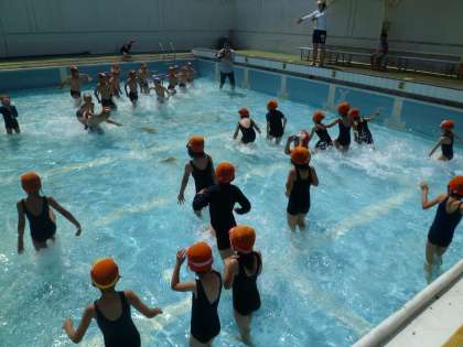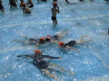 はじめは水慣れの期間です。浅い水位で,水遊びのルールや,去年やったことの確認をしました。待ち遠しかったようで,とてもいきいきとした笑顔を見せてくれました。
