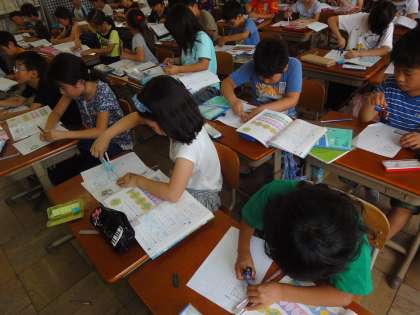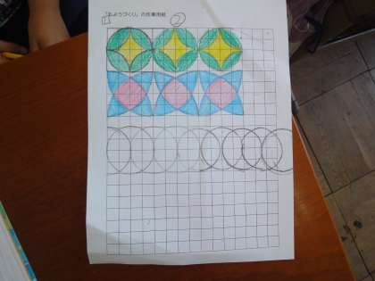 幾何学模様がきれいで,子どもたちも描いたあとにじっくり眺めていました。