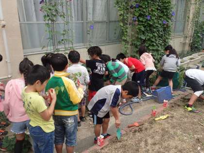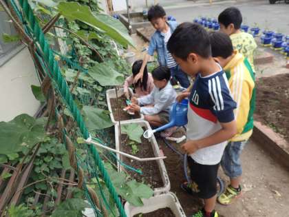 4年生 ツルレイシを植えかえました。