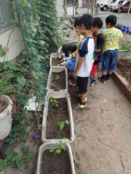 理科の学習で育てていたツルレイシから,【ひげ】が出てきたので,プランターに植えかえました。