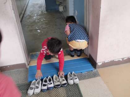 6月8日の児童朝会で,保健安全委員会から「スリッパを並べよう」という劇がありました。さっそく,意識して取り組んでいました!!