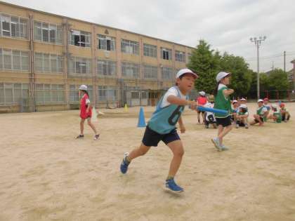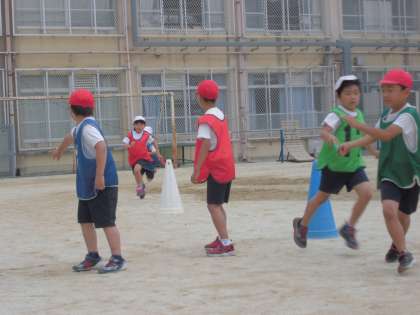 11日(木)の1時間目に3年生みんなでリレー学習のまとめをしました。雨が降りそうな天気でしたが,チームで協力しながら最後まで全力で走りきりました。