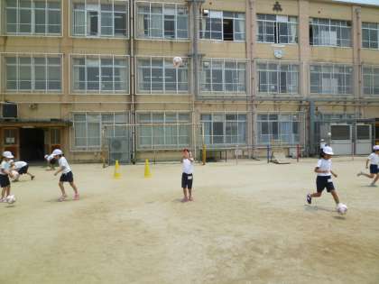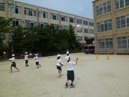 今度はキャッチボールの練習です。ボールをできるだけ高く投げて,キャッチするまでに何回拍手できるか頑張りました。「3回できた!」「次はもっとできるかな。」「あぁ,この投げ方だと上手くキャッチできないなあ…」など,自分からどんどん進んで取り組む姿が素敵でした。