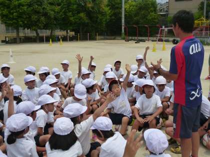 最後に,子どもたちはコーチに向かって,「また来て!」と手を振っていました。