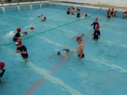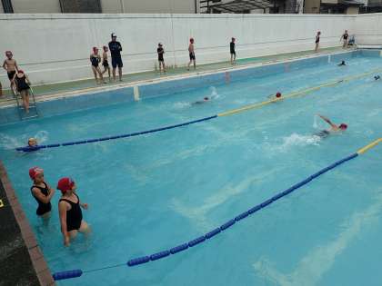 バディーが横について,アドバイスをしながら,泳ぎました。