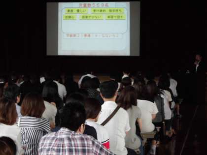学校長が本校児童の様子や学校の取組について説明しました。200名近くの保護者に来ていただきました。ありがとうございました。