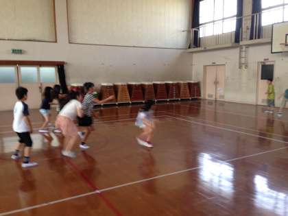 新しい運動に挑戦!その名も「ドッヂビー」。ドッヂボールとフリスビーの合体したスポーツを体験しました。ドッヂボールよりも参加しやすいのかな?お楽しみ会などでもやってみたいですね。