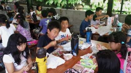 家から持参したお弁当。野外炊事場でおいしく頂きました。