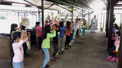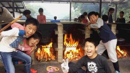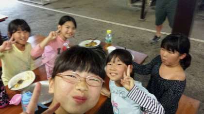 「『野外炊事では,みんな協力しておいしいカレーをつくりましょう。』と,食事係を代表して全体に呼びかけました。わたしは,班のリーダーとして,みんなに優しく教えてあげることができました。私たちが作ったカレーを食べて,校長先生もおいしいと,喜んでくれていました。」児童の感想