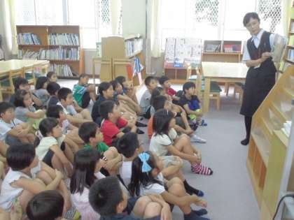 伏見中央図書館の司書さんにブックトークをしていただきました。ブックトークとは,テーマに沿った本の紹介のことです。「韓国・朝鮮のお話」をテーマにしたブックトークは,子どもたちをすてきな本の世界に連れて行ってくれました。