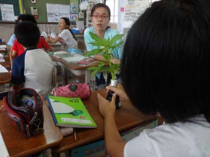 植物が吸った水はどこをとおっているのだろうかを確かめるため色のついた水を吸わせる実験をしました!