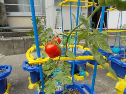 2年生はトマトやなす,ピーマンなどの夏野菜を育てています。
