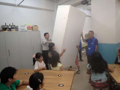 発泡スチロールを開発した方にもお会いして,モノづくりにかける思いを聞くことが出来ました。