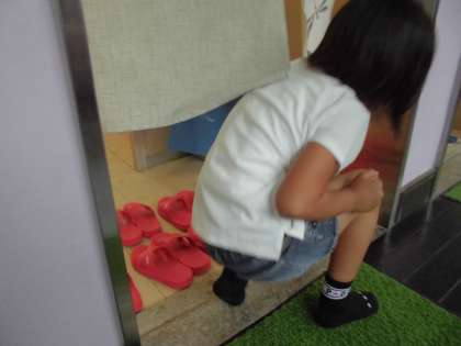 生き方探究館のトイレでは,使ったサンダルをしゃがんできれいに並べている姿を目にしました。