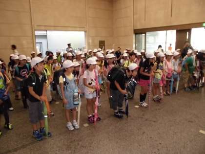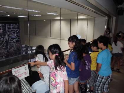 110番通信指令センターでは,交通情報の部屋を前の列で見ていた児童が,後ろの児童に「前にどうぞ。」とやさしく声をかけ,場所をゆずっていました。