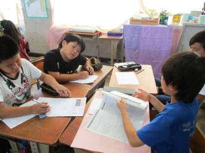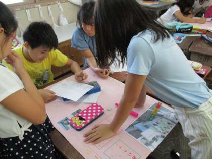 スチューデントシティ学習のまとめとして,ブースごとに新聞を作っています。