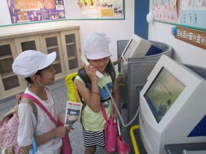 午後は110番通信指令センターに行きました。いろいろな体験ゲームがあったり,クイズに答えたりして,楽しく学習することができました。