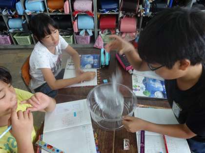 子宮に見立てた袋を手で押してみたり、振ってみたりしました。