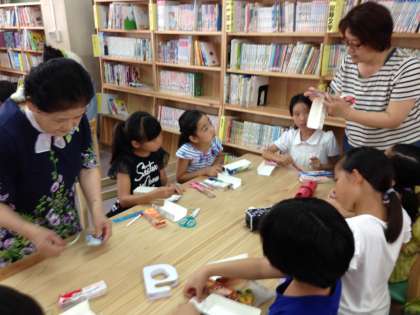 エコについて学んだ後,牛乳パックを再利用して,びっくり箱を作ります。