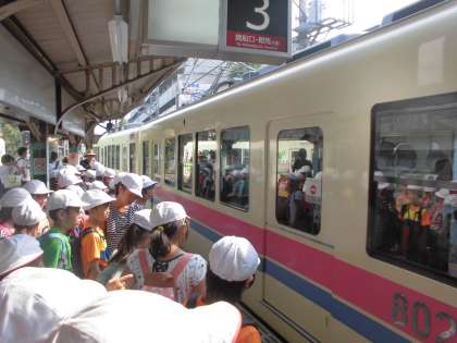 初めて叡山電車に乗った人もいて,「かわいい〜。」「バスみたい〜。」とつぶやいていました。