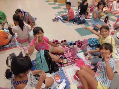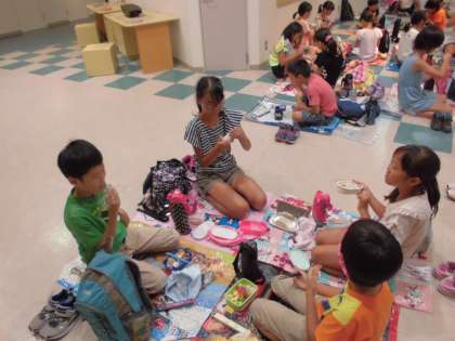 食事の時間,お行儀よく正座して食べている班もありました。また,脱いだくつをちゃんと並べて置いている班もありました。食べ終わった後に,ごみを拾っている人も見かけました。クリーンセンターでごみを集める姿は,何とも言えずうれしい気持ちになりました。