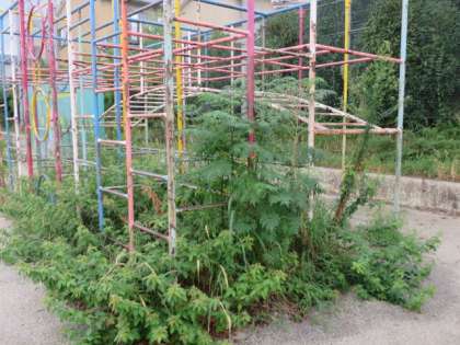 9日ぶりに学校に来てみると、雑草が元気に茂っていました。