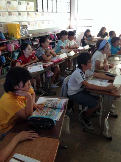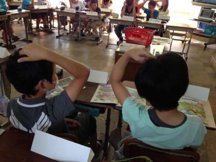 ポインティングゲームというゲームを通して、アルファベットの発音と形を確かめました。ただ・・・、ゲームのスタートの姿勢が少し変わっているので・・・、恥ずかしく感じることもありますね。