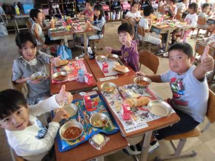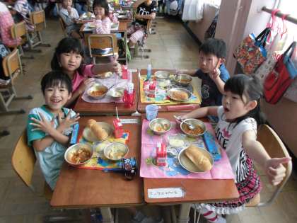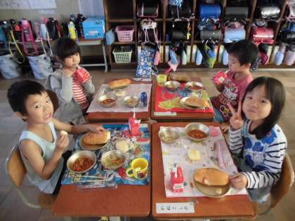 1年生は給食室の上に教室があるので,いつも10時ぐらいになると,とてもいい香りがしてきます。