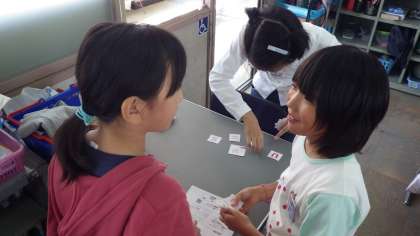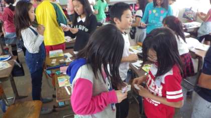自分のほしいアルファベットを友だちにお願いして,友だちのサイン入りアルファベットカードを集めました。