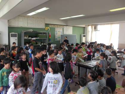 1,3組の合奏と、2,4組の合奏を互いに聞き、感想を言い合いました。