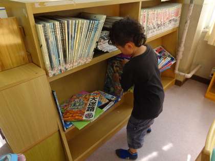 友だちと迷路をしたり,自分の好きな本を選んで読んだり,図書室ではいろいろな本に出会うことができます。