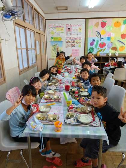 ランチルームで給食を食べました。