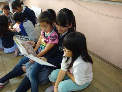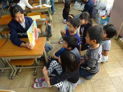 読み聞かせでは,中学生が選んでくれたお話を楽しみました。