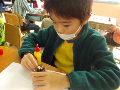 ビーズを使って作っている時は一生懸命。