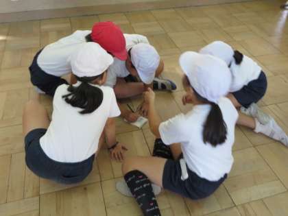 体育の学習で「リズムダンス」をしています。グループで振り付けを考え,練習しています。もうすぐクラスでの発表です。うまく踊れるかな…?