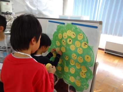 めあてが達成できたら「にこにこシール」を貼り、振り返っています。たくさんシールが集まり「みんなで目標を達成している!」と感じながら学習をしています。
