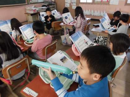 けんばんハーモニカの最初の授業のころとは違って,今ではある程度の音階は分かっている様子です。