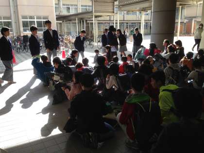 中学生の先輩たちが正門であたたかく迎えてくれました。