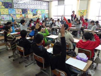 自分から意見を発表しようと積極的に挙手しています。