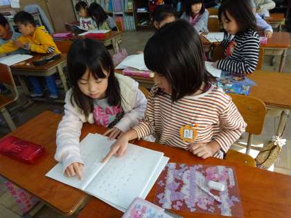 前回作ったカードをくじびきのようにして,自分がとったカードのかたかなの言葉を使って,文作りをしました。みんなで作った文を交流しました。いろんな言葉の文ができて,楽しかったですね!