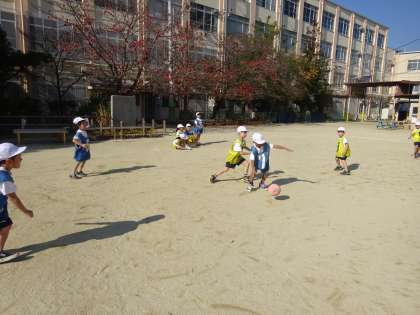 ルールやマナー,スポーツマンシップについて考えながら,ゲームをしています。もめたりもしますが,何より「楽しかった!!」という感想が多く,みんなで体を動かす楽しみをひしひしと感じています。これからも頑張りましょうね!