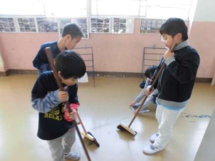 自分の持ち場の仕事を終えた子どもが,さらに掃除する場所を見つけて進んで掃除をしてくれました。