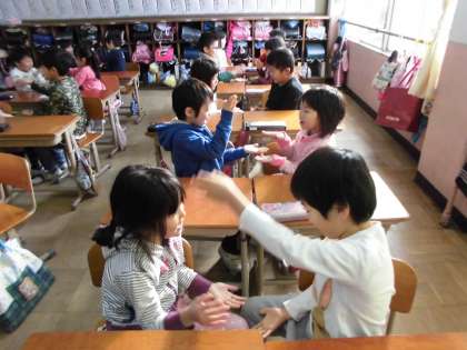 ペアになって「おちゃらか ほい」をしました。